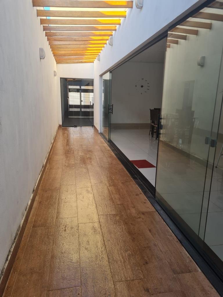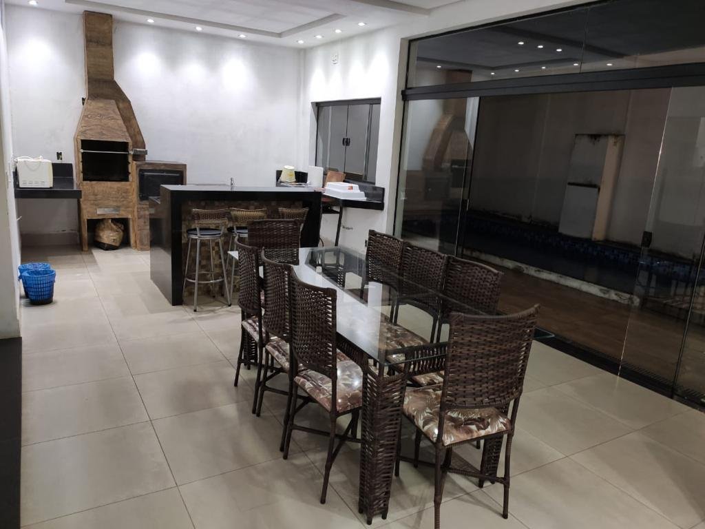 Casa com 5 quartos todos com ar condicionado2 suite (1 com sacada)1 banheiro que divide 3 quartos fundosSacada grande nos dois quartos fundoSala completa2 lavaboCozinhaCopaÁrea churrasqueira cobertaPiscina aquecida