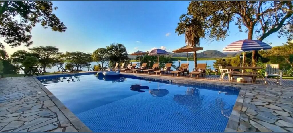✨ Conta com 11 suítes completas, flat equipado, ampla área social e gastronômica com cozinha industrial, além de uma área de lazer completa com piscina, sauna, quadra de beach tennis, quiosque à beira d’água, pier flutuante e rampa para barcos.